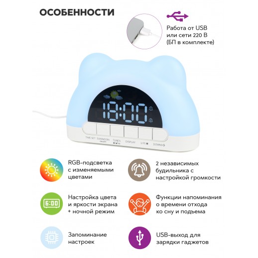 белый, с будильником и RGB-подсветкой |