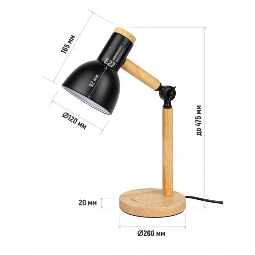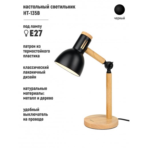 Светильник настольный HT-135B, ARTSTYLE, черный, метал./дерево, E27