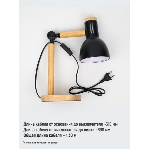 Источник света — лампа с цоколем Е27 Классический лаконичный дизайн Выключатель на проводе Натуральные материалы: металл и дерево