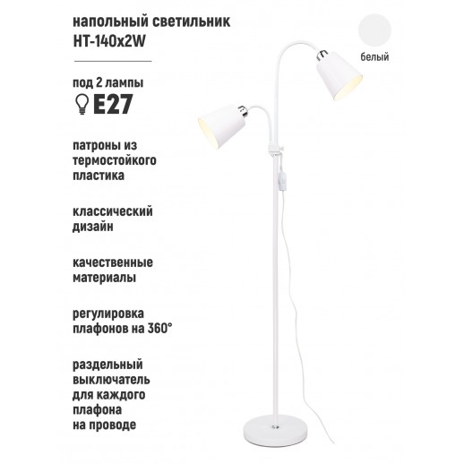 Описание: Светильник напольный HT-140x2W, ARTSTYLE, белый, Е27, металл. |