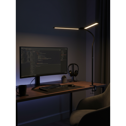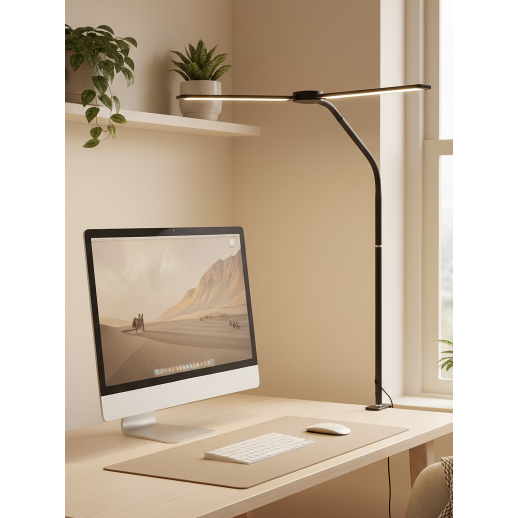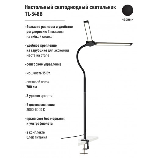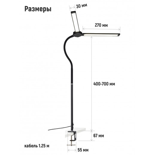 настол. светильник, 15Вт, 2 плафона, на струбцине, димм.)