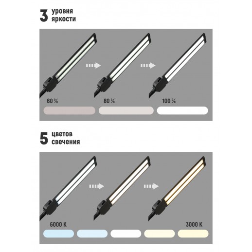 Смена цвета свечения (5 видов — от теплого до холодного)