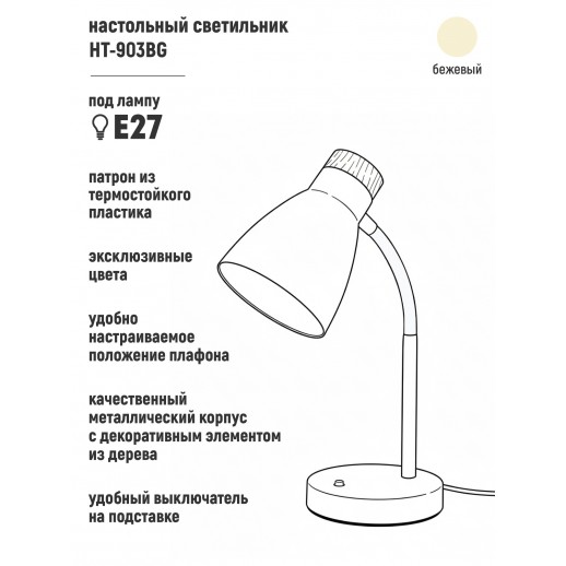 Светильник настольный HT-903BG, ARTSTYLE, бежевый, металл./дерево, E27