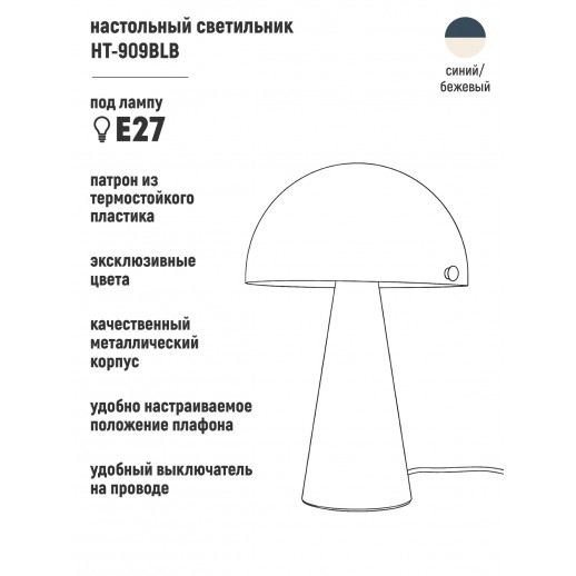 Светильник настольный HT-909BLB, ARTSTYLE, бежевый/синий (металлик), металл., E27