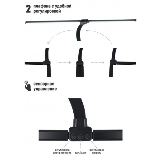 в основании плафонов: - вкл./выкл. (+ таймер выключения) - Яркий свет без мерцания и ультрафиолета - Большие размеры и удобство регулировки: 2