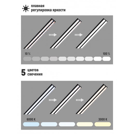 температура, К сменная, 5 уровней: 3000-6000К Световой