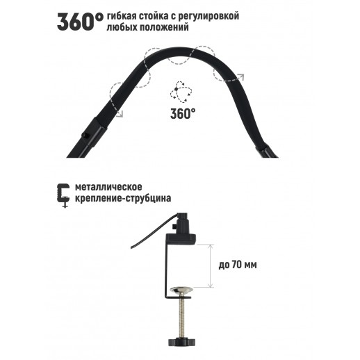 плафона, гибкая стойка - Удобное крепление на струбцине для
