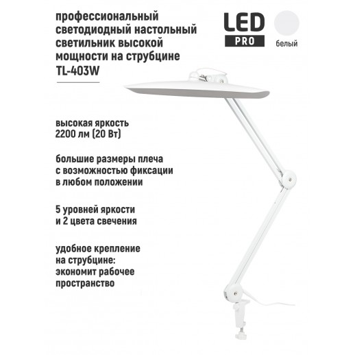 TL-403W, белый (профессиональный светодиодный настольный светильник высокой