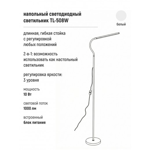 Описание: Светильник, ARTSTYLE, TL-508W, белый (напольный светодиодный,